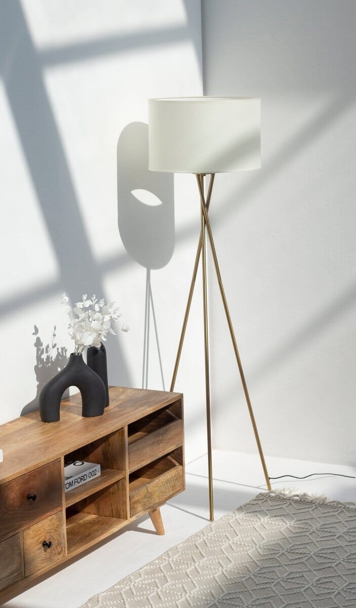 Crafted with high-quality materials, this floor lamp is as durable as it is stylish. The tripod base provides stability, while the fabric drum shade adds a soft, diffused glow to your room, creating a warm and inviting ambiance.